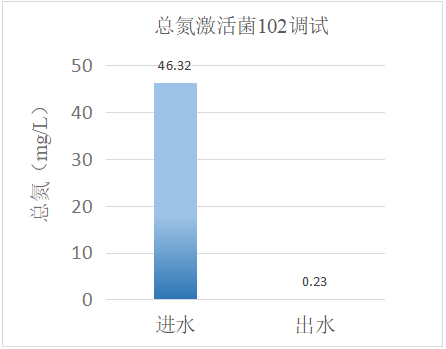 我司技術人員通過現場評估,發現生化系統總氮去除效率有限,生化溫度30℃,系統內有效生物量不足,導致系統抗沖擊能力差,出水總氮難以達標。通過技術人員現場投加復合碳源101和激活菌102,再配合現場生化系統運行條件控制、優化,達到如下效果: